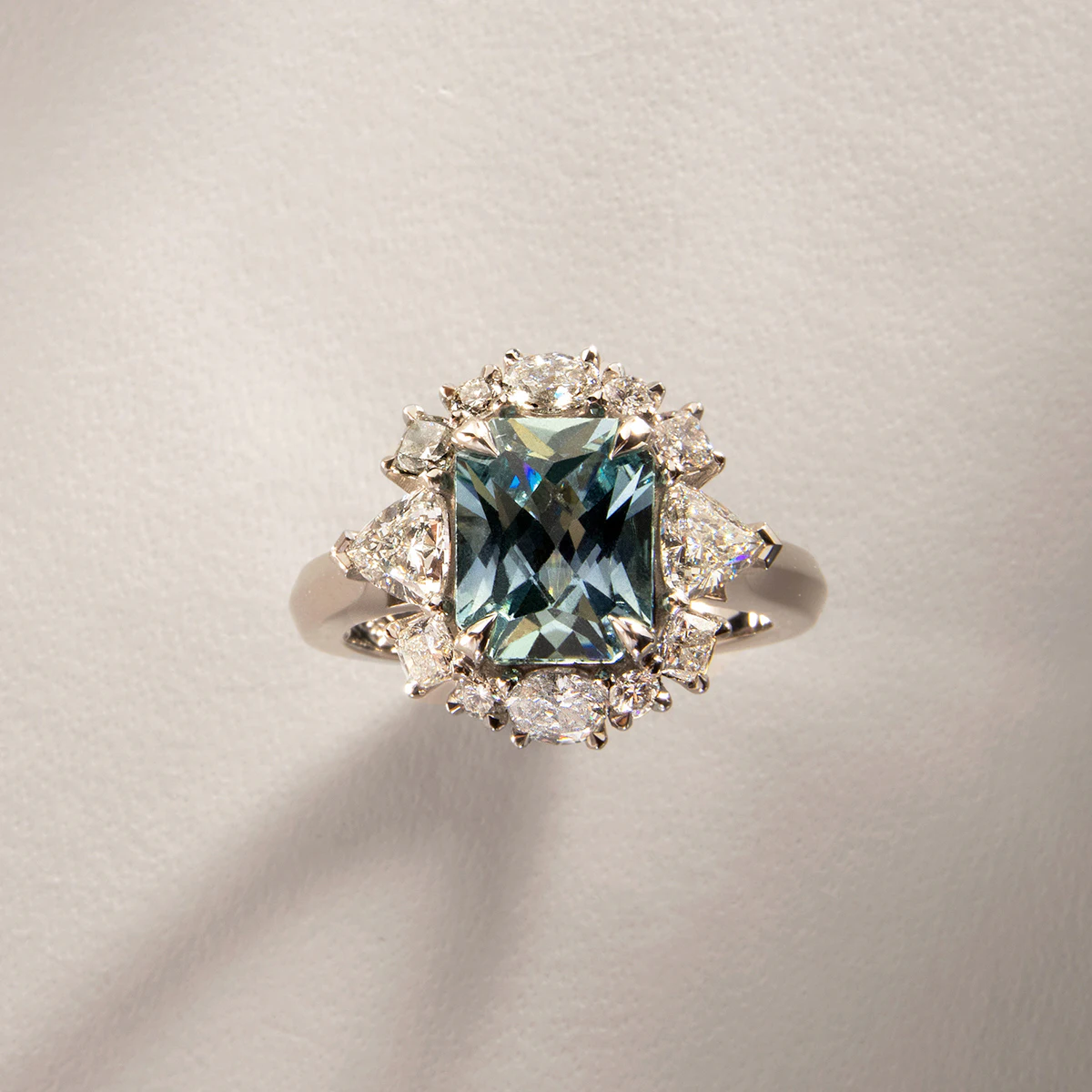 Like the daring mid-century architecture that inspires the collection, Cohen is audacious yet minimal. With a platinum band, it features a stunning 5.27ct cushion-cut red spinel – a glamorous, deep red gemstone loved by collectors.